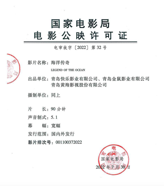出 品:青岛快乐影业有限公司、青岛金鼠影业有限公司、青岛黄海影视股份有限公司