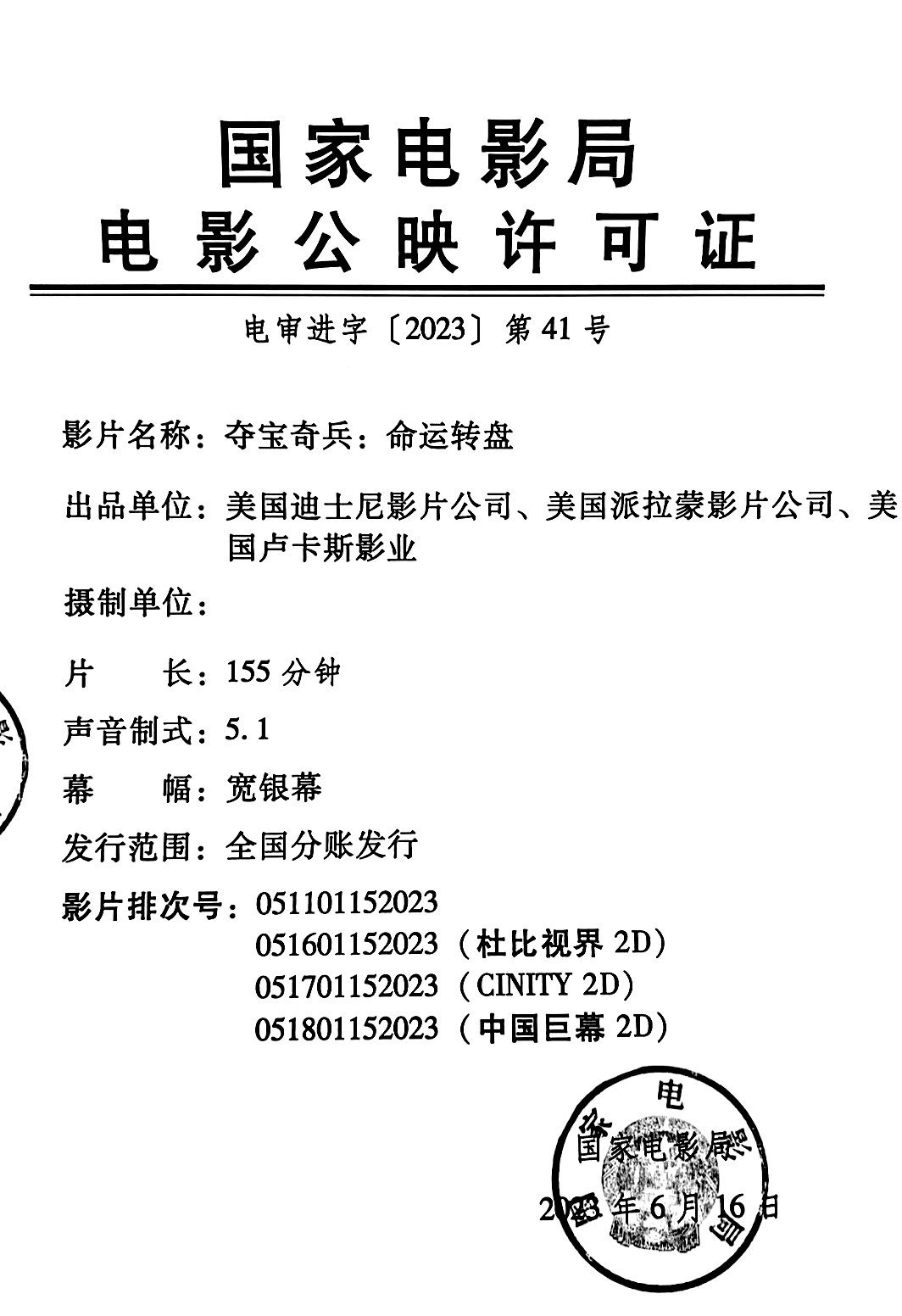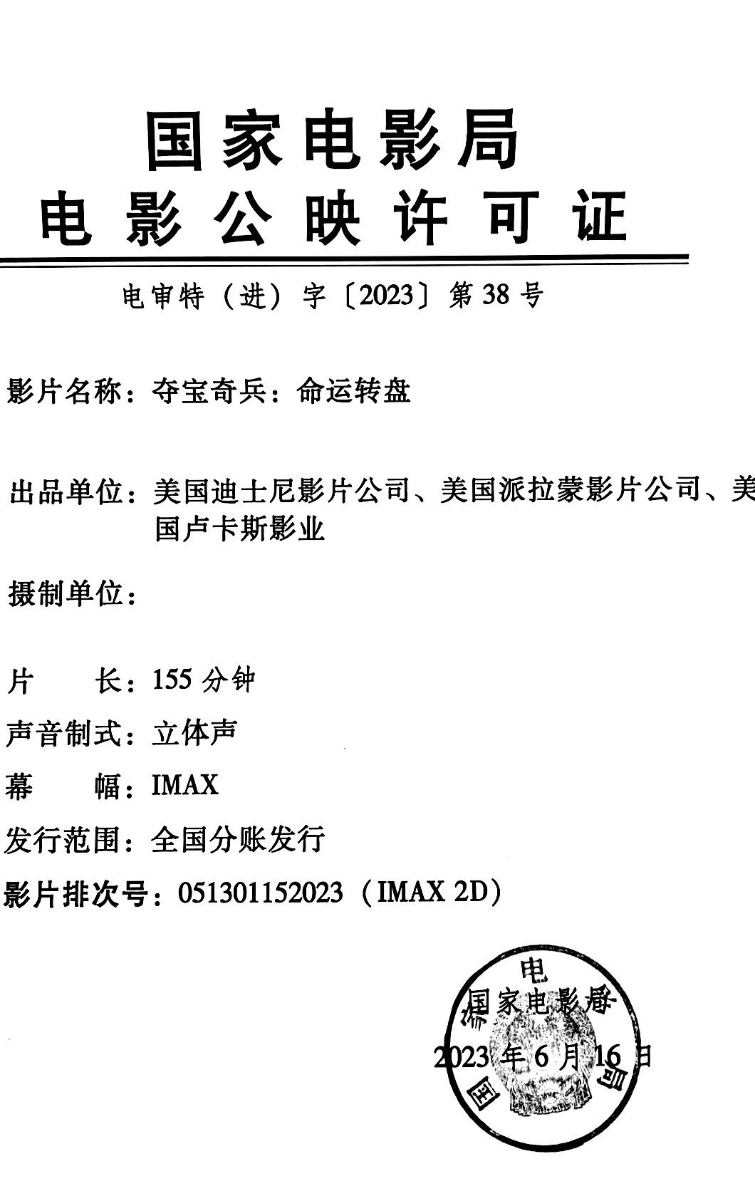 发 行:中国电影股份有限公司北京电影发行分公司(甲区)
