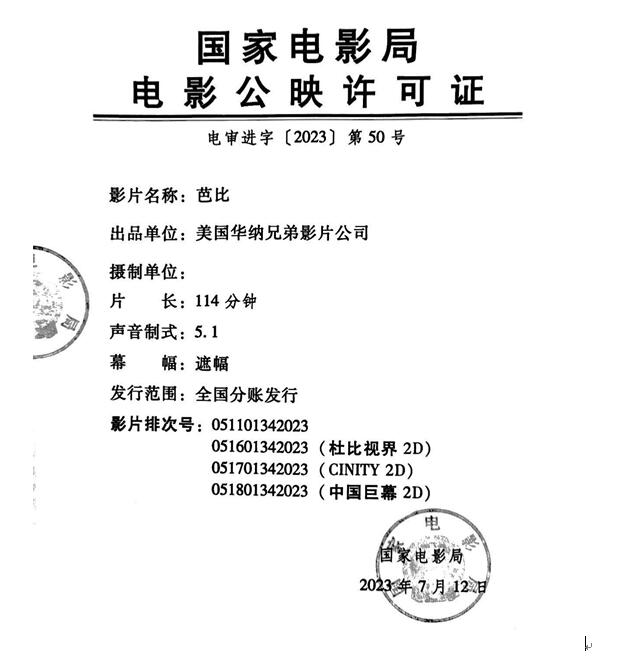 《芭比》数字版影片发行通知(延期)