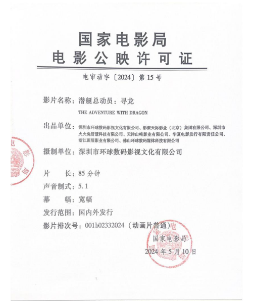 出 品:深圳市环球数码影视文化有限公司、影聚天际影业(北京)集团有限公司、深圳市火火兔智慧科技有限公司、天津山崎影业有限公司、华夏电影发行有限责任公司、浙江画眉影业有限公司、佛山环球数码媒体科技有限公司