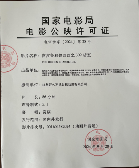 出 品:杭州好久不见影视动漫有限公司、华夏聚德影视传媒(北京)有限公司、华夏电影发行有限责任公司、杭州童话大王影视有限公司、湖南金鹰卡通传媒有限公司、浙江青春传媒有限责任公司、广州风暴数码传媒股份有限公司、视界树影视科技(南通)有限公司、保定尚晓之谷文化传媒有限公司